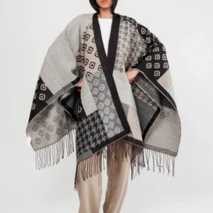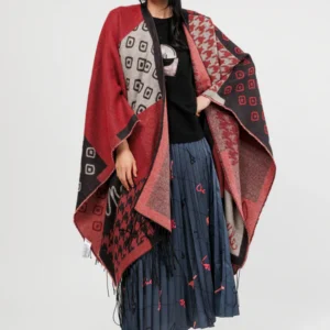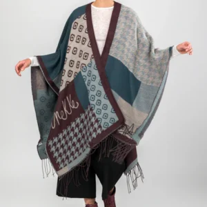 Poncho à franges bleu, bordeaux et beige Anekke collection Mademoiselle